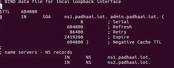 sudo nano /etc/bind/zones/db.padhaai.iot