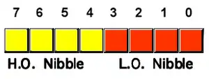 A nibble is 4 bits. One hexadecimal digit is one nibble in size.