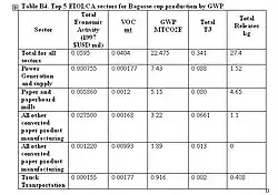 From the output of this EIOLCA the pollutants from burning 5000 kg of bagasse are subtracted and the final results are given in the figure to the right.