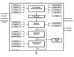 - ↑ 14.0 14.1 14.2 14.3 Vink E., Rábago K., Glassner D. and Gruber P. “Applications of life cycle assessment to NatureWorks™ polylactide (PLA) production,” Polymer Degradation and Stability 80 (2003).