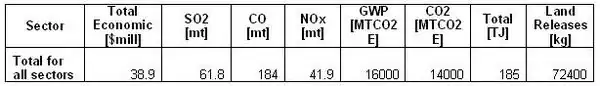 An Economic Input-Output Life Cycle Analysis (EIOLCA) is a tool for gauging the environmental impact of a product or service based on a US dollar amount of production or use. The dollar values used in this section are in terms of 1997 US dollars.