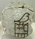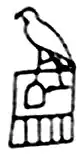 Ebony Label(tag) of possession of King Den w:Den (pharaoh). (Note: Size variation of some hieroglyphs: "Lion-forepart"-