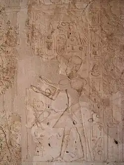 Phonetic value an.[2] A determinative for bring, brought, etc. The middle w:register (sculpture), center-right shows the destruction of an enemy stronghold.