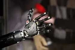 In cyberware, prosthetics are modernized in order to better mimic the natural function and movement of an organic limb, incorporating the uses of microprocessors to further bridge the gap between man and machine. To this end, procedure such as the Agonist-antagonist Myoneural Interface (AMI) has been created and conducted. As a result, Jim Ewing, who lost his leg in a climbing accident at Cayman Islands, gained a synthetic substitute which he could feel and move around as if it was a part of his body.[5]