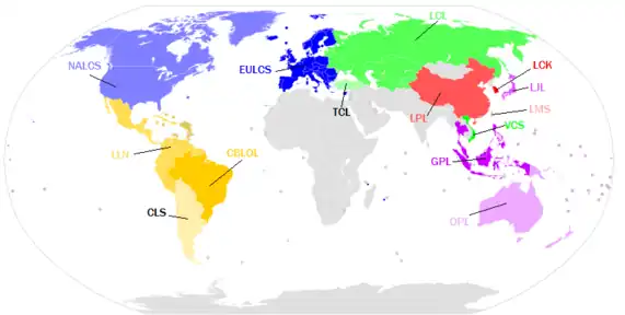 Worldwide, Riot Games runs e-sport competitions. This includes the League of Legends Championship Series, which covers North American and European tournaments. Currently, there are over 100 teams around the world in the 14 regional leagues of Riot Games. During a season, teams compete separately into two seasonal splits. Teams win championship points to qualify for two major international competitions: Mid Season Invitational and World Championship League of Legends. The World Championship of Riot Games is the annual professional tournament that ends each season.[6]