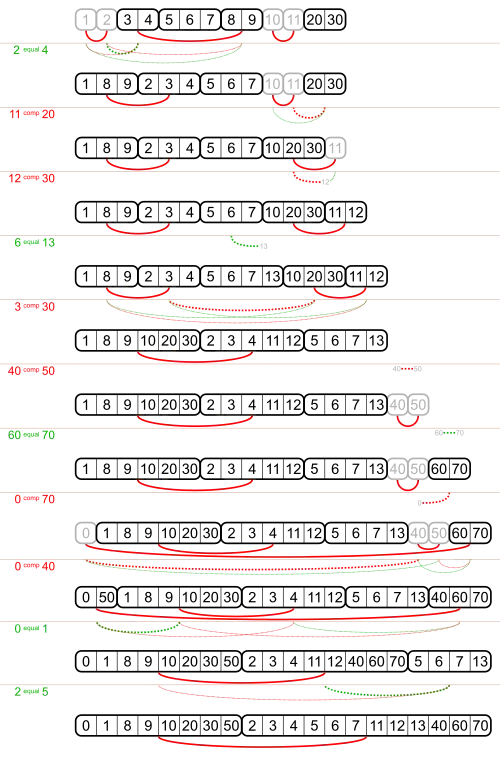 [[0, 1, 8, 9, 10, 20, 30, 50], [2, 3, 4, 5, 6, 7, 11, 12, 13, 40, 60, 70]],