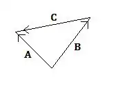 Next, whatever coordinate system we are in, form the plane containing and , and use plane geometry. Let . That is, runs from the tip of to the tip of . Form the triangle with those vectors as sides.