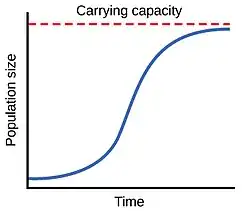 The carrying capacity is the number of organisms that can be supported by the environmental resources in an ecosystem. A carrying capacity graph illustrates that the environment can only produce so much food and shelter for a population before the population reaches an equilibrium--the same number of births each year equal the same number of deaths. Another term for carrying capacity is S-shaped curve.
