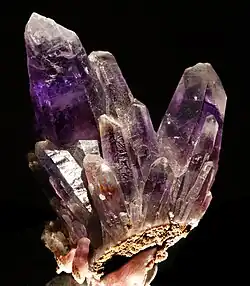 Amethyst is a violet colored macrocrystalline variety of quartz. It is also the most valuable of all quartz varieties. Its color can vary from light violet to deep purple. Heating amethyst gives rise to yellow and colorless tones.