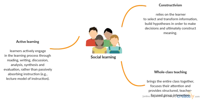 Most people need to reinforce their beliefs and understandings by asking others questions, thereby making learning an inherently social activity. Current education theories are grounded in the notion of the social learner and position student engagement as a key component of knowledge construction. These learning theories are shown in the following chart.
