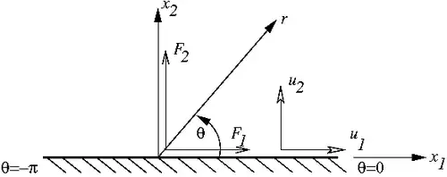 ![{\displaystyle {\begin{aligned}2\mu u_{r}=-2\mu u_{1}&={\frac {F_{2}}{2\pi }}(\kappa -1)\\2\mu u_{\theta }=-2\mu u_{2}&={\frac {F_{2}}{2\pi }}\left[1+(\kappa +1)\ln(r)\right]\end{aligned}}}](../_assets_/eb734a37dd21ce173a46342d1cc64c92/bf6949aef857baf3ca0906c3579992107841d0a5.svg)