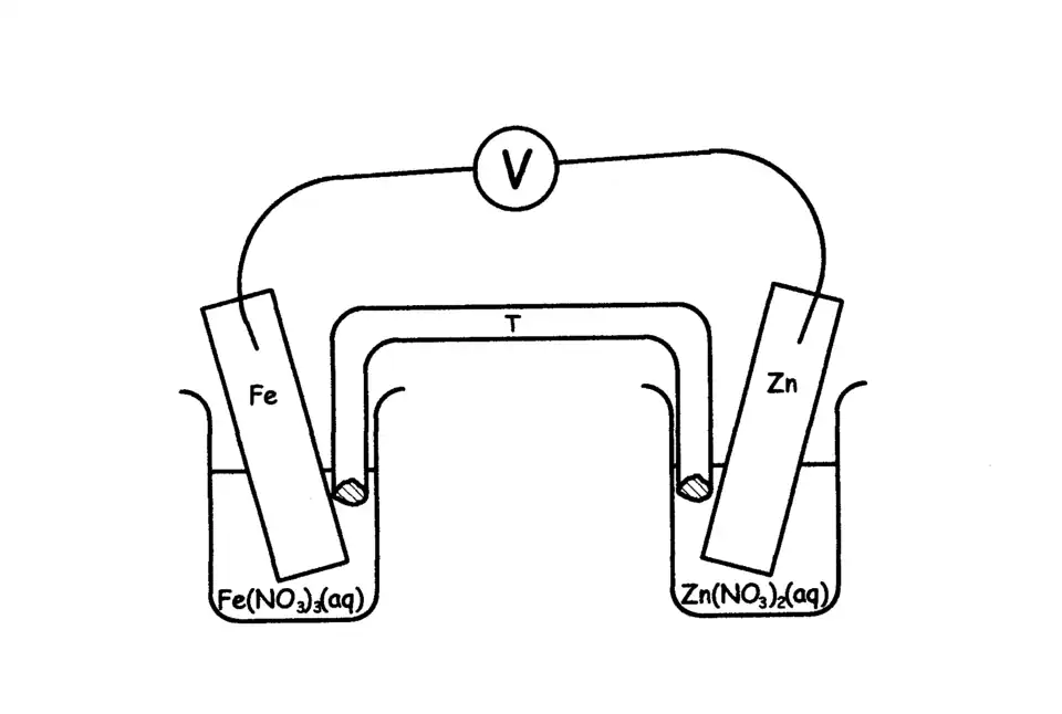 The following diagram shows a standard Zinc/Iron Electrochemical Cell.