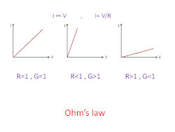 In the electric circuit, if temperature and all other conditions remain constant, R and G are constant therefore relationship between I and V is linearity then: