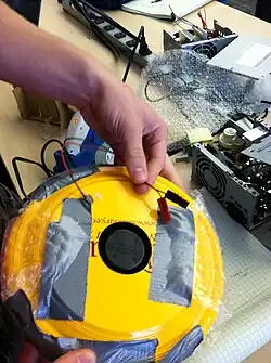 Rather than making a hovercraft shell from scratch (we were using duct tape and cardboard before), we decided to just use a Frisbee. This ended up being good because plastic is both stable and lightweight.
