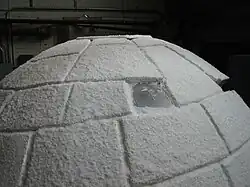 We began by reading over the work done by the first group on this project. They made some considerable progress on the math associated, so we started reading that to learn it ourselves. Once we had figured it all out, we cleared up the math involved in calculating the size of blocks in an igloo. Along with this, we drew up a table with all the projected sizes of the blocks necessary in construction We also researched some alternative methods of constructing an igloo.