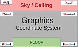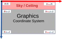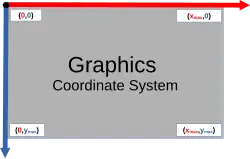 Graphics have an own coordinate system to display points in pixel graphics or geometric objects like lines, polygons and circles in the coordinate system. The diagram shows the coordinate system of the image. Keep in mind that the coordinate of the y-axis has a different orientation than the y-axis in the standard 2D Cartesian coordinate system. This information is relevant if you experiment with equirectangular projections in Projective Geometry Playground.