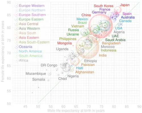 - these lists of countries by life expectancy, and
