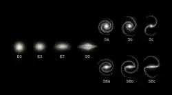 "The sequence is composed of two sections, the elliptical nebulae and the spirals, which merge into each other."[2]