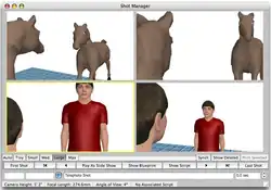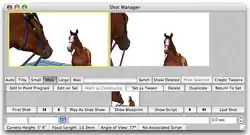 ![]() The Shot ManagerThen I go to the Shot Manager to see my completed shots. At the top of the page is all the pictures I have created (which in this case is just the wide angle and the telephoto versions of an over-the-shoulder shot. |