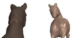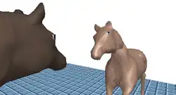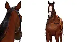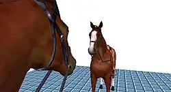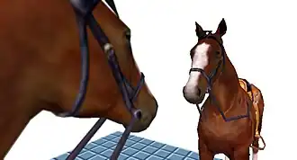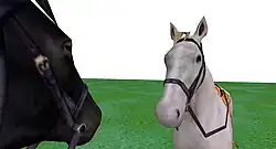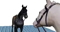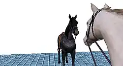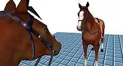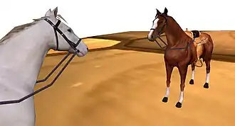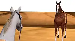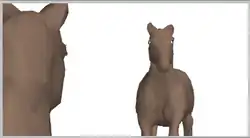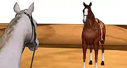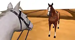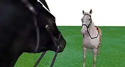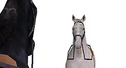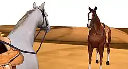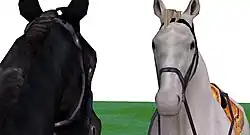 The finished shotThe wide angle lens makes the two horses seem cold and distant. Even though the horses are very close together when I photograph them, they look very far apart. If you do not understand about lenses, go to the next lesson about camera lenses. | |