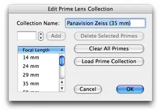 ![]() 35mm motion picture cameraWhen working with FrameForge 3D Studio, I like to limit the lenses that I use. I prefer prime lenses (fixed lenses) rather than zoom lenses because they have much better control over the depth of field. That is because there is more glass on a prime lens (glass diameter) than on a zoom lens. In the lower left, I select a prime lens set. I selected the Panovision Zeiss Lens set. |
