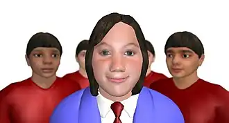 I feel neutral about the character in this frame. I can't tell whether this shot is meant to imitate a 'normal' lens or a 'moderate telephoto' lens, but the character's featrures are no longer distorted. A big smile would make me feel warmly toward her.