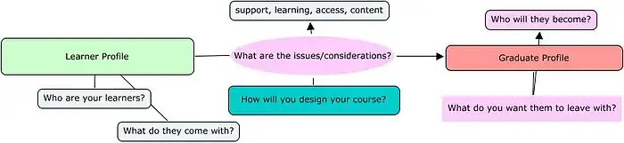 Before you can design materials for flexibility in your courses, not only do you need to know who your learners are (Learner Profile), you also need to be clear about the achievements and characteristics they will leave with when they finish your course/programme (Graduate Profile). The issues and considerations associated with how your students learn will influence how you support them and the resources you will provide.