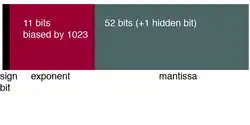 Double precision operates in the same manner as single precision, except more space is allocated to a number. Again, we have 1 sign bit, but we also have 11 bits for the exponent and 52 bits for the mantissa. The exponent is biased again, but this time, it is by 1023. Machine epsilon is 2-52.