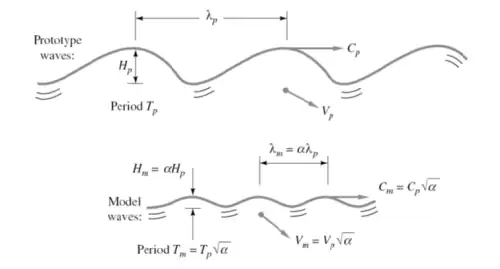 With a free surface: model and prototype Reynolds number, Froude number, and (if necessary) Weber number and cavitation number are correspondingly equal.
