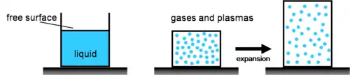 Liquids, gases, plasmas and, to some extent, plastic solids are accepted to be fluids. A perfect fluid offers no internal resistance to change in shape and, consequently, they take on the shape of their containers. Liquids form a free surface (that is, a surface not created by their container) whereas gases and plasmas do not, but, instead, they expand and occupy the entire volume of the container.