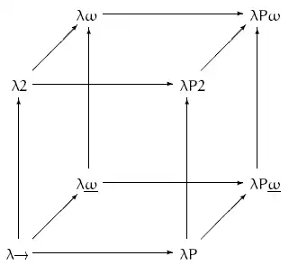 Two of these systems are familiar. λ→ is (modulo minor syntactic variations) the explicitly simply typed λ-calculus. λ2 is (modulo minor syntactic variations) the explicitly typed second-order λ-calculus. λPω, the fullest system in the λ-cube, is also called the "calculus of constructions."