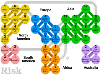 However, Point to Point Movement is an alternative way of presenting Area Movement, as the points act as areas with the "lines" representing the existence of a border between adjacent areas. See the example for Risk