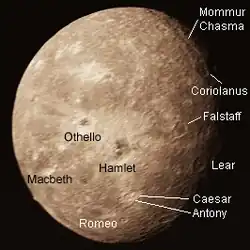 - ↑ 82.0 82.1 NASA/JPL (January 24, 1986). Miranda - Highest Resolution Color Picture. Pasadena, California USA: NASA/JPL. http://www.ciclops.org/view/3454/Miranda_-_Highest_Resolution_Color_Picture. Retrieved 2013-03-31.