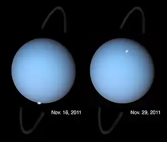 "Over the years, the Hubble Space Telescope has observed many bright spots on Uranus. They appear similar to the bright spots seen in Jupiter’s southern latitudes, as well as in its polar aurorae."[56]