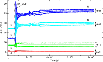 - ↑ 106.0 106.1 106.2 106.3 106.4 106.5 106.6 K. Tsiganis, R. Gomes, A. Morbidelli & H. F. Levison (26 May 2005). "Origin of the orbital architecture of the giant planets of the Solar System". Nature 435-461: 459-. doi:10.1038/nature03539. https://www-n.oca.eu/morby/papers/nature-papers-5-26-05.pdf. Retrieved 12 April 2021.