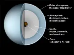 "Models of Uranus and Neptune are computed based on the assumption that these planets consist of three layers: a rock core, an ice shell, and an atmosphere."[30]