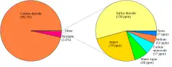 On the left are pie charts that show the approximate composition of Venus' atmosphere including some minor constituents.