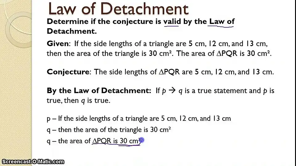 The Law of Detachment is a form of deductive reasoning that is used to draw conclusions. This law has a specific format that distinguishes itself as a law.