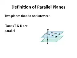 IMG: https://www.google.com/search?q=parallel+planes&rlz=1C1GGRV_enUS760US760&source=lnms&tbm=isch&sa=X&ved=0ahUKEwj824yktNTWAhUF5yYKHYm8BAIQ_AUICigB&biw=1366&bih=637&safe=active&ssui=on#imgrc=hUqvVboZAEqRTM (Line AB and line CD are parallel. Thus AB || CD--the planes are parallel and BOTH planes contain lines AB and CD).