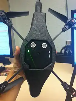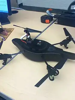 The Parrot AR drone is part of a new innovative wireless quadricopter, controlled through a cellphone, and recently added android operating systems. The drone broadcasts its own wifi network, and binds itself to the first device it locates. The drone's network has no encryption codes The company, Parrot, was founded by Henri Seydoux in 1994 to enhance the capabilities of mobile cellphone use. The AR drone operates through wifi connection to a cellphone. The drone was initially remote controlled using an Iphone, which was controlled using a camera on the front of the drone. Once the piloting software was manipulated, remote control could be used with android operating systems in cell pones too. The wifi connection that enables the drone to fly also was discovered to work with computers and desktops. Recently, the AR drone wifi connection was modified to be remote controlled using Xbox Kinect, in which one uses their body to control the drone. Quadricopters like the Parrot AR Drone have significantly more stability than regular helicopters, and use a very convenient wireless system.