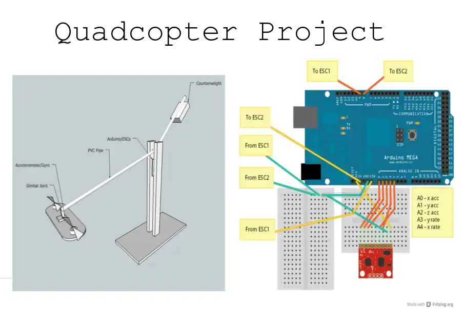 Building a fully automated quadcopter within three weeks is still a ways away, even with the progress that the previous team made on the project. One key factor that was holding the project back was the see-saw the previous teams were using for balancing the motors; It was broken, unbalanced, and unable to expand from its original purpose. We decided as a team that creating a new balance would be the first step in building a complete quadcopter.