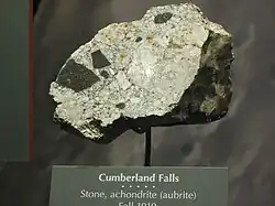 {{free media}}"Aubrites are a rare group of meteorites (only 30 classified at the time ...) that hold important implications for reducing magmatic systems in our solar system, and have also been suggested as a potential petrologic analog for rocks on Mercury (Burbine et al. 2002)."[1]