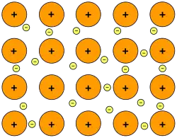 - Fluid "sea" of electrons results in malleability, ductility, conductivity, and low solubility.