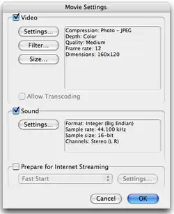 To make your movie file run faster by exporting to a new codec, you can change the settings to Photo-JPEG compression with only 12 frames per second at half size. The audio should be the same as the project so you hear it clearly.