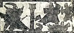The Great Wall of China (Chinese: 万里长城) was a huge wall used to keep invaders (specifically the Xiongnu Tribe who were constantly attacking China) away from Ancient China. Even though it is magnificent, huge, and quite stunning, it is also home to hundreds of dead slaves/servants/laborers who built the wall. He also made the Terracotta Army (Chinese: 兵马俑; literally: "Soldier-and-horse funerary statues"), which were clay-built models of over 8,000 soldiers, 130 chariots with 520 horses and 150 cavalry horses (who were actually part of Qin's army), were made (in 210-209 BCE) to protect the emperor in the afterlife. The army was spotted by a group of local farmers building a well in Xi'an, China, in 1974. The local farmers alerted the government, and a whole exploration started.