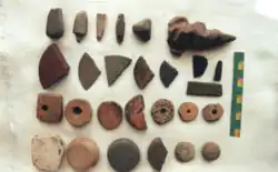 Archaeologists excavate, or dig, at sites where people have left traces. At these sites, called archaeological digs, workers carefully excavate one small area at a time. They use tools such as trowels and small brushes to unearth objects without shifting or damaging them. Using screens, workers sift through removed soil for small items such as pieces of broken pottery. Researchers then use a variety of methods to date and analyze objects.