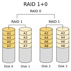 - A data storage virtualization technology that combines multiple physical disk drive components into one or more logical units for the purposes of data redundancy, performance improvement, or both.[17]