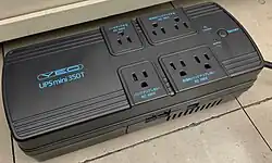 - An electrical apparatus that provides emergency power to a load when the input power source or mains power fails.[22]