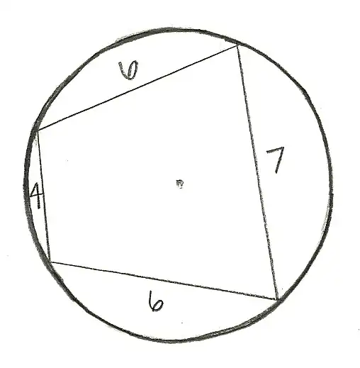 In this formula, Brahmagupta's Formula, if given a quadrilateral that can be circumscribed in a circle (also known as cyclic), the area of the quadrilateral can be expressed by the equation: , where a,b,c & d represent the sides of the quadrilateral and p=a+b+c+d, the perimeter of the quadrilateral.