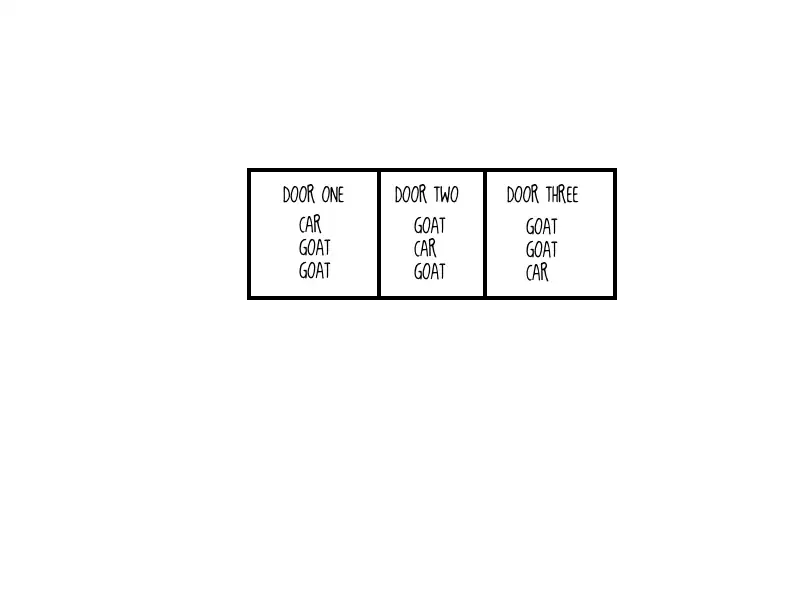 - Let's start by thinking of all the possible outcomes behind the doors: